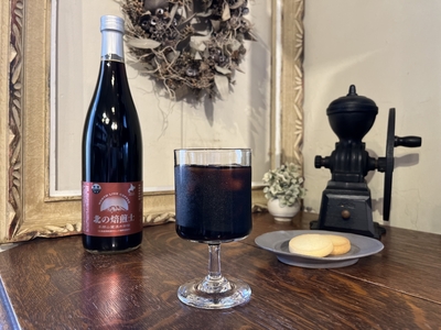 環境省の名水百選にも選ばれている京極町の吹き出し湧水でネルドリップしてワインボトル詰めした、夏季限定のアイスコーヒーです。